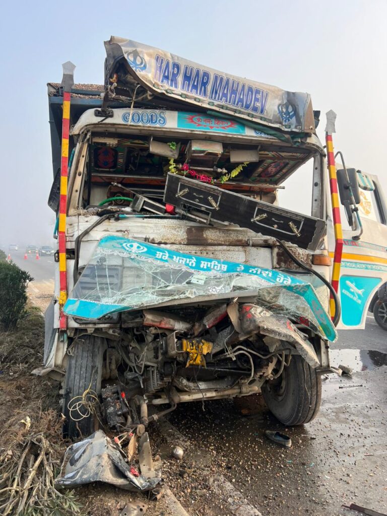 घटना का विवरण जानकारी के अनुसार हादसा मंगलवार सुबह करीब 7:55 बजे हुआ। बताया जा रहा है कि एक लोडेड ट्रक (घोड़ा) नंबर JK03H8793 टायर फटने के कारण सड़क पर टायर बदलने के लिए रुका हुआ था। इसी दौरान भोगपुर से जालंधर की ओर जा रहा एक टिप्पर (PB073737) अनियंत्रित होकर खड़े ट्रक से जा टकराया। टक्कर इतनी भयानक थी कि दोनों वाहन बुरी तरह क्षतिग्रस्त हो गए।