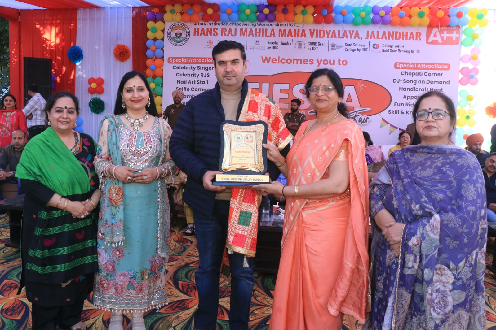उत्सव में विभिन्न प्रकार के छात्राओं द्वारा संचालित स्टॉल भी थे, जो आभूषण, वस्त्र, सौंदर्य सेवाएँ, खाद्य पदार्थ, शिक्षा केंद्र, सेल्फी कॉर्नर और रंगोली कला प्रदान कर रहे थे। छात्राओं ने खरीदारी, भोजन और मनोरंजन गतिविधियों का आनंद लिया। इंडियन आइडल प्रतियोगी कुमार विनय के संगीत प्रदर्शनों ने उत्सव में और आकर्षण जोड़ा। समापन सत्र के मुख्य अतिथि एमसीजे के मेयर श्री विनीत धीर थे। सम्मानित अतिथि पर्यटन और सांस्कृतिक मामलों के सलाहकार श्री दीपक बाली थे। पंजाबी गायक गुरप्रीत सिंह ने अपने जोशीले प्रदर्शन से दर्शकों को मंत्रमुग्ध कर दिया और उन्हें अपने गीतों पर थिरकने के लिए मजबूर कर दिया।