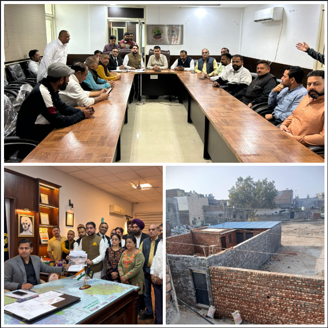 जालंधर : जालंधर के भार्गव नगर थाने के नजदीक केंद्र सरकार की जमीन पर हो रहे अवैध निर्माण को लेकर जालंधर वेस्ट से पूर्व विधायक शीतल अंगूराल की अध्यक्षता मे जालंधर भाजपा महामंत्री अशोक सरीन हिक्की, पार्षद तरविंदर सोई, पार्षद अजय बबल, पार्षद पति दर्शन भगत, पार्षद पति अमित सिंह संधा, एडवोकेट हरमिंदर संधू, मंडल भाजपा प्रधान मनीष बल, भाजपा नेता योगेश मल्होत्रा विशेष रूप से मिले।