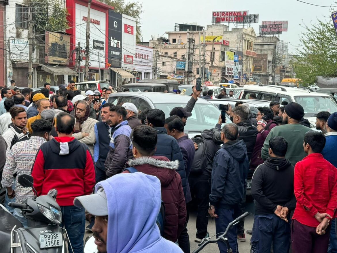 जालंधर : रेड क्रॉस मार्किट के नज़दीक, भगवान वाल्मीकि चौक (ज्योति चौक) में कार पार्किंग को लेकर जमकर हंगामा हुआ। इस दौरान चालक ने रेहड़ी वाले पर हमला किया। जिससे युवक गंभीर रूप से घायल हो गया। हंगामे की सूचना मिलते ही थाना चार की पुलिस मौके पर पहुंची। इस दौरान पुलिस जब चालक को गाड़ी में बिठाकर थाने ले जा रही थी, तो रेहड़ी वालों ने गाड़ी को घेर लिया। जिसके बाद चालक ने तेज रफ्तार से गाड़ी भगाई और आसपास खड़े लोगो को गंभीर चोटें आई, वहीं घुसाई भीड़ ने कार का शीशा तोड़ दिया। गौरतलब है कि हंगामा इतना जबरस्दत था की पगड़ी उतारने के आरोप भी लगाए जा रहे है।