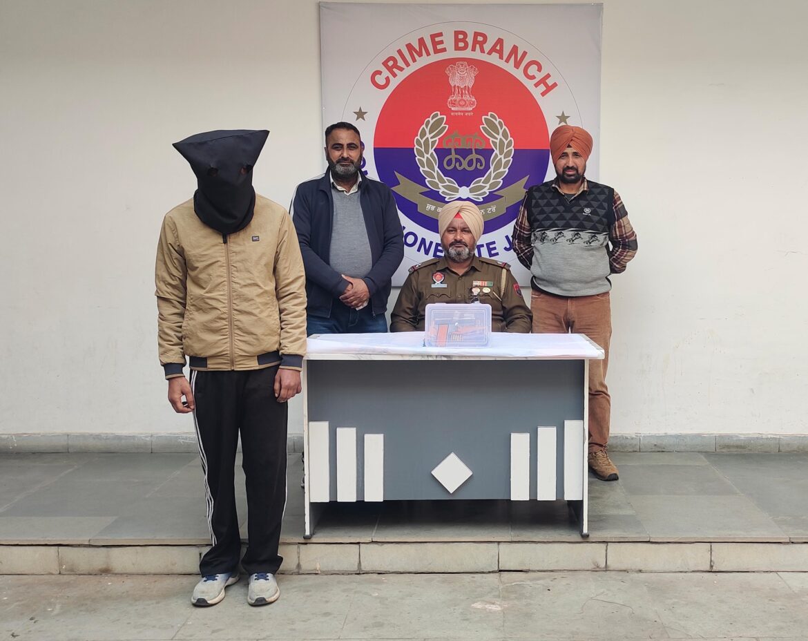 जालंधर: पुलिस कमिश्नर स्वप्न शर्मा के नेतृत्व में जालंधर कमिश्नरेट पुलिस ने अवैध हथियार सहित एक व्यक्ति को गिरफ्तार किया है। इस संबंध में जानकारी देते हुए पुलिस कमिश्नर ने बताया कि पुलिस को सूचना मिली थी कि तरनवीर सिंह उर्फ तनु पुत्र तजिंदर सिंह निवासी कोट सिद्दीकी, जालंधर ने चिल्ड्रन पार्क के नजदीक इलाके में गोलियां चलाई हैं। उन्होंने बताया कि पुलिस ने त्वरित कार्रवाई करते हुए जाल बिछाकर आरोपी को गिरफ्तार कर लिया है। सीपी ने बताया की तलाशी लेने पर पुलिस को एक अवैध 32 बोर पिस्तौल, पांच जिंदा कारतूस तथा इसी कैलिबर का एक कारतूस बरामद हुआ।