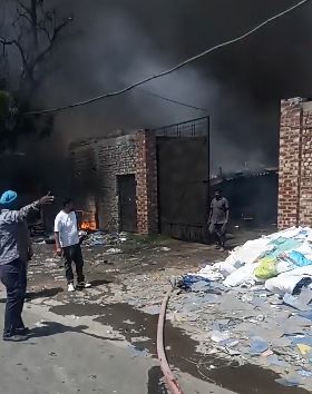 जालंधर: जालंधर के काला सिंघा रोड पर स्थित रद्दी-कबाड़ के गोदाम में शनिवार सुबह भयानक आग लगने की खबर सामने आई है। मिली जानकारी के अनुसार शहर के काला सिंघा रोड पर स्थित रद्दी-कबाड़ के गोदाम में भीषण आग लग गई। मौके पर तेज हवाओं के चलते देखते ही देखते आग फ़ैल गई है। आसपास के लोगों के अनुसार गोदाम में कुछ मजदूरों के परिवार भी रह रहे थे, जिन्हें आसपास के लोगों की मदद से सुरक्षित बाहर निकाल लिए गया है।