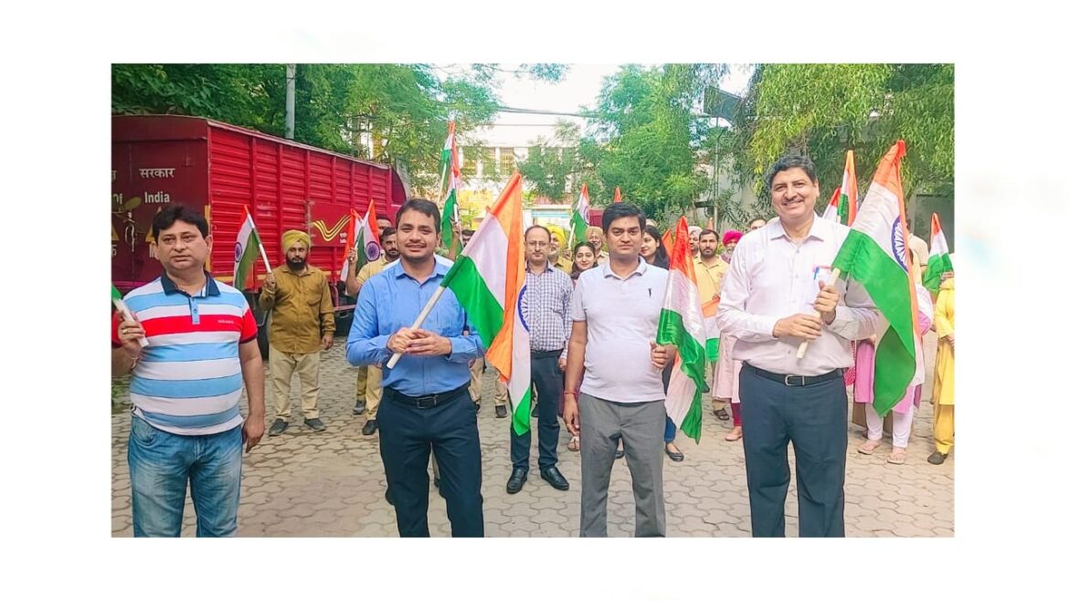 जालंधर: एकता और राष्ट्रीय गौरव के देशभक्तिपूर्ण प्रदर्शन में जालंधर डिवीजन के डाक कर्मचारियों ने “हर घर तिरंगा” अभियान के तहत फ्लैग मार्च निकाला। इस कार्यक्रम का नेतृत्व शहर के वरिष्ठ डाकघर अधीक्षक सुभाष चंद्र मीना और सिटी हेड ऑफिस के वरिष्ठ पोस्टमास्टर सुधीर कुमार ने किया। मार्च में डाक कर्मचारियों ने सक्रिय भागीदारी की, जिन्होंने गर्व के साथ भारतीय राष्ट्रीय ध्वज उठाया, जो राष्ट्र के आदर्शों और स्वतंत्रता की भावना के प्रति उनकी प्रतिबद्धता का प्रतीक था। मार्च जालंधर सिटी पोस्ट ऑफिस से शुरू हुआ और नागरिकों के बीच देशभक्ति और एकता का संदेश फैलाते हुए विभिन्न मार्गों से गुजरा।