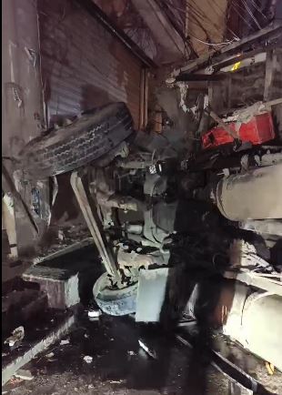 जालंधर: अड्डा होशियारपुर चौक के पास ट्रांसफार्मर से टकरा अनयंत्रित होकर पलटा ट्रक, दुकानों के टूटे शटर