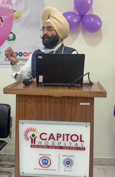 जालंधर: जालंधर के कैपिटल हॉस्पिटल की ओर से जानकारी देते हुए बताया गया कि मुख्यमंत्री स्वास्थ्य बीमा योजना (एमएमएसवाई) के तहत अब पात्र परिवार कैपिटल हॉस्पिटल में हर वर्ष ₹10 लाख तक का मुफ्त इलाज करवा सकते हैं। इस योजना के अंतर्गत मरीज दिल की बीमारियों, जोड़ एवं हड्डियों से संबंधित समस्याओं तथा कैंसर जैसी गंभीर बीमारियों का उपचार करवा सकते हैं। जानकारी देते हुए कैपिटल अस्पताल के मेडिकल डायरेक्टर डॉ. हरनूर सिंह पृथी ने बताया कि अस्पताल द्वारा मरीजों को उच्च स्तरीय और मुफ्त उपचार सुविधाएं प्रदान की जा रही हैं, ताकि समाज के हर वर्ग को बेहतर स्वास्थ्य सेवाएं मिल सकें।