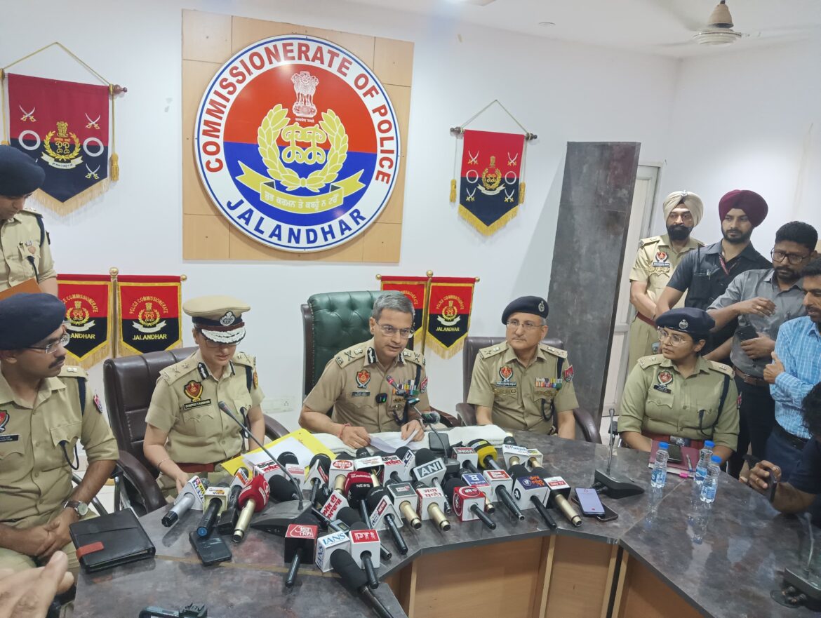 जालंधर (पूजा, सलोनी) पंजाब डीजीपी गौरव यादव ने पुलिस लाइन में विशेष प्रेस कॉन्फ्रेंस की। इस दौरान पुलिस कमिश्नर धनप्रीत कौर, जॉइंट सीपी संदीप शर्मा सहित अन्य अधिकारी मौजूद रहे।