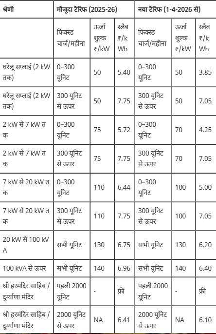 पंजाब: पंजाब सरकार ने गर्मियां शुरू होते ही प्रदेश की जनता को बड़ा तोहफा दिया है। मिली जानकारी के अनुसार पंजाब स्टेट इलेक्ट्रिसिटी रेगुलेटरी कमीशन (पीएसईआरसी) ने साल 2026-27 के लिए पंजाब स्टेट पावर कॉरपोरेशन लिमिटेड (PSPCL) और पंजाब स्टेट ट्रांसमिशन कॉरपोरेशन लिमिटेड (PSTCL) के नए टैरिफ ऑर्डर जारी कर दिए हैं। यह बिजली दरें 1 अप्रैल 2026 से पंजाब भर में लागू होंगी।