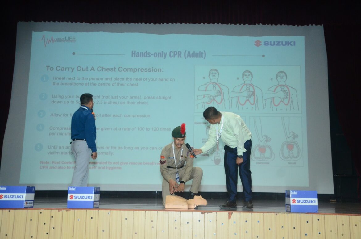 कार्यक्रम के दौरान वैल्यू लाइफ फाउंडेशन और सुज़ुकी मोटरसाइकिल इंडिया प्राइवेट लिमिटेड के प्रतिनिधियों राकेश पटेल और विख्यात सिंह ने विशेष जानकारीपूर्ण सत्र लिए। छात्रों को सी.पी.आर. और अन्य जीवन बचाने वाली इमरजेंसी तकनीकों का प्रैक्टिकल प्रदर्शन भी दिखाया गया, जिससे वे आपात स्थिति में सही तरीके से काम कर सकें। इसके अलावा सुरक्षित ब्रेक लगाने के तरीके और दुर्घटना से बचाव की तकनीकों के बारे में भी जानकारी दी गई।