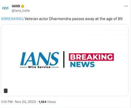 वहीं बॉलीवुड के डायरेक्टर करन जोहर ने भी इंस्टाग्राम पर भावुक पोस्ट शेयर कर धर्मेंद्र जी को श्रद्धांजलि देते हुए इस खबर की पुस्टि की है।