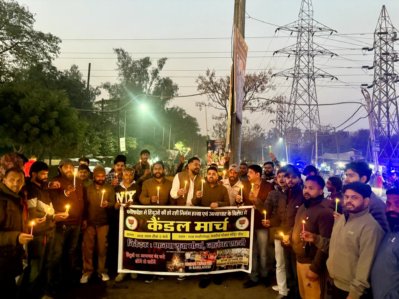 जालंधर: भाजयुमो जिला अध्यक्ष पंकज जुल्का की अगुवाई भाजपा युवा मोर्चा जालंधर की इकाई द्वारा फोकल प्वॉइंट चौक में मोमबत्ती जलाकर बंगलादेश में हिंदुओं पर हो रहे नरसंहार के खिलाफ प्रदर्शन किया गया। इस अवसर पर पंकज जुल्का ने कहा कि बांग्लादेश में सत्ता परिवर्तन के बाद से हिंदू अल्पसंख्यकों के विरुद्ध हिंसा और हाल ही में मनसिंह जिले के भालुका में हुई रूह कंपा देने वाली घटना थी। जिसने हर हिन्दू के हृदय पर भारी घाव दिया है ।