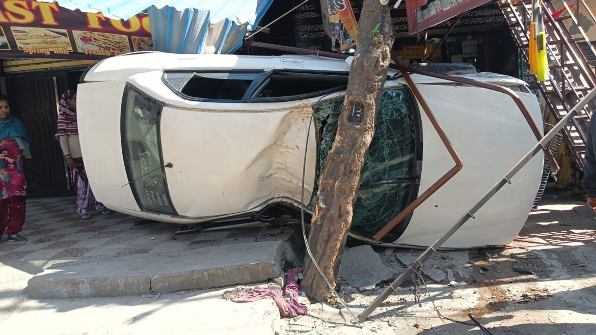 जानकारी देते हुए दुकान के मालिक ने बताया कि गाड़ी पहले भी कहीं पर हिट होने वाली थी, लेकिन एकदम से हमारी दुकान के बाहर पेड़ से जा टकराई। गाड़ी की स्पीड इतनी ज्यादा थी कि अगर पेड़ ना होता तो यह सीधी हमारी दुकान के अंदर आ सकती थी। उस समय मेरी बच्ची बाहर खेल रही थी, अगर मैं समय से नहीं पहुंचता तो मेरी बच्ची का भी नुकसान हो सकता था। आगे उन्होंने कहा कि पास खड़े रेहड़ी चालक को भी कार कुचल सकती थी।