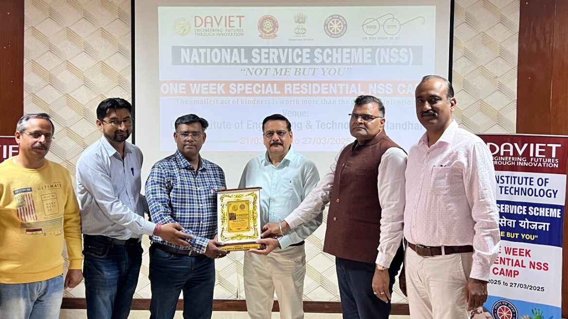जालंधर: जालंधर के डीएवी इंस्टीट्यूट ऑफ इंजीनियरिंग एंड टेक्नोलॉजी (डीएवीआईईटी) की एनएसएस इकाई ने परिसर में सप्ताहभर चलने वाले विशेष एनएसएस शिविर का उद्घाटन किया। इस शिविर को लेकर लोगों की प्रतिक्रिया बेहद उत्साहजनक रही और लेखन के समय तक 50 से अधिक स्वयंसेवक इसमें भाग लेने के लिए पंजीकरण करा चुके हैं। इस शिविर का उद्देश्य छात्रों में नेतृत्व, टीम वर्क और सामाजिक जिम्मेदारी के मूल्यों को विकसित करना है।